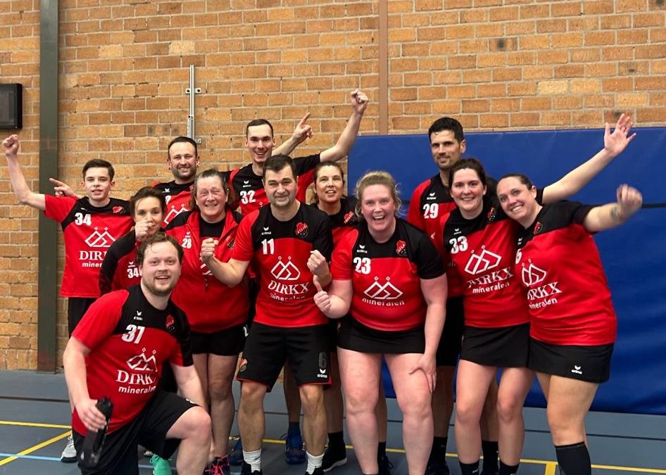 Kleine stunt toch wel, als je de heenwedstrijd zo verliest en geen sven hebt en Ellen niet hoeft in te brengen. Een collectieve goede dag, zo mogen we het wel noemen. Als we deze hebben dan kunnen we best wel eens winnen natuurlijk, leuk dat dit dan tegen de buren is. We maken er een foto van en genieten toch wel even extra. Met een beetje geluk eindigen we ook niet laatste in deze poule, dat staat toch best lekker.