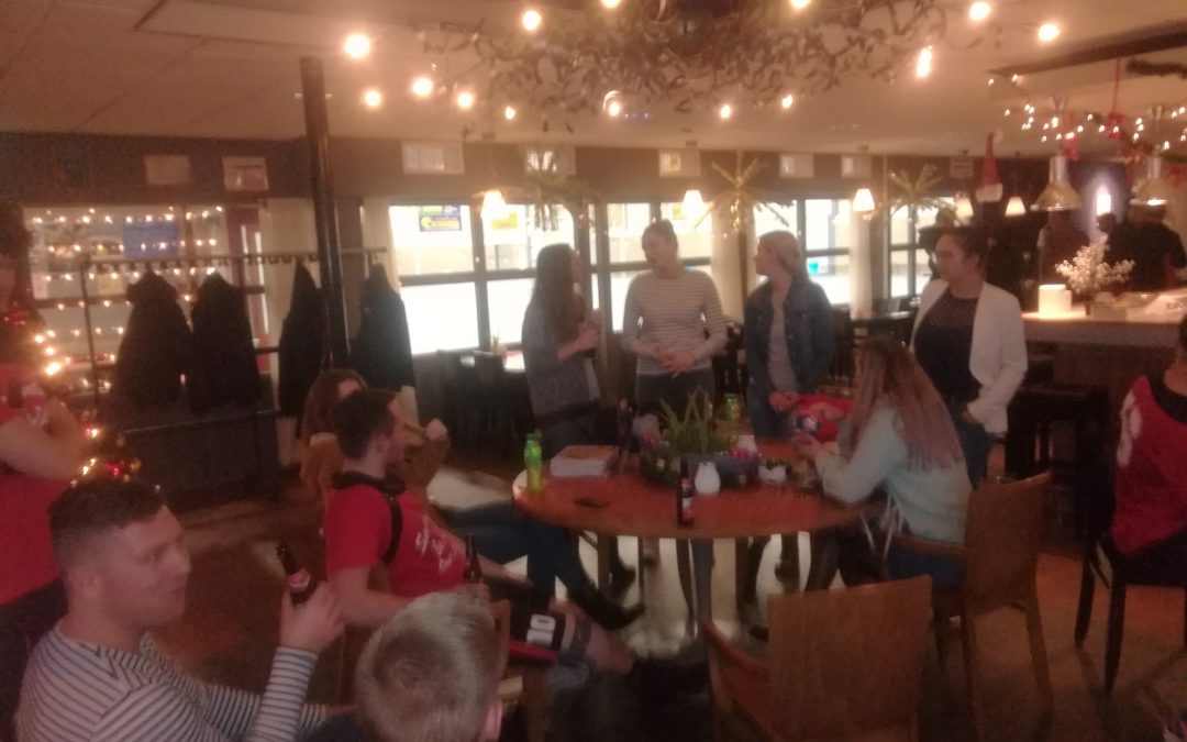 Na een welverdiend drankje en een douche maken we ons op voor het afscheidsfeestje van thomas. Dit was erg gezellig ( we gaan je missen!) Inmiddels terwijl ik dit tik zijn er alweer 3 dagen van eten en drinken voorbij gegaan en voel ik ( net zoals u waarschijnlijk) mijn blouse wat strakker staan. Tijd om maar weer te gaan sporten lijkt me. Dit mag weer op 5 januari. Voor hier wens ik u het beste en veel geluk in 2019. We hopen uiteraard weer op veel sportieve hoogtepunten.