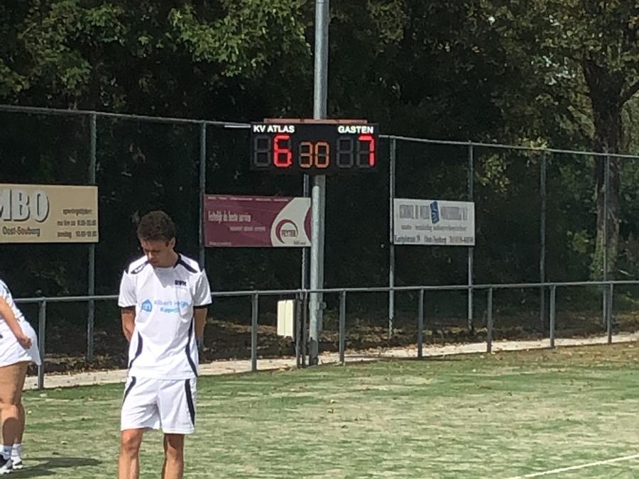 Om 13:15 fluit Harry in en ziet hij in de aanval eerder genoemde Jolien met Feline, Andre en Leinko acteren. In de verdediging is het aan Ellen W, Emmy, Lucas en Laurens om de goals tegen te houden. Een redelijke metamorfose t.o.v vorig seizoen. Ellen W en Andre erbij kunnen met hun ervaring en goals het verschil nog wel eens gaan maken in wedstrijden die we vorig jaar verloren daar ben ik zeker van. Andre beschikt ook over longen als een paart en is fanatiek bij het uitverdedigen. Dit werkt al snel en op de counter is het Feline die de 1-0 op het bord schiet. KVK, ook uitgerust met de combinatie ervaring en jonge spelers, maakt al snel de 1-1. In het andere vak zien we goede aanvallen, ellen geef wat diagonale ballen waardoor het spel openbreekt en er mooie schotkansen komen. Deze word door Ellen zelf dan ook benut met de 2-2 ( kvk had nog gescoord voor de oplettende lezer). Het andere aanvalsvak had het moeilijker met het zakken van KVK. Kansen waren te over, maar Leinko had in de coronatijd ook zn scherpte daar maar gelaten, waardoor KVK eigenlijk lang de controle bleef houden gedurende de eerste helft. Atlas scoorde wel goed mee, mede doordat Emmy 2 stippen benutte. Uiteraard was dit niet zonder enige converse, want ja hoe is de nieuwe stippenregel nu ook alweer?? De aanvaller die vrij staat moet de stip nemen, en niet degene waar de overtreding op plaatsvind. Maar goed de stip ging erin, dus Laurens zal hier niet teleurgesteld over zijn. De eerste helft was een boeiend gevecht voor de supporters. En deze waren er nog redelijk wat. De banden tussen KVK en Atlas zijn recent naast het veld wat hechter aangehaald, dus dat zorgt voor meer publiek op het terras. Deze zien in de 1e helft Andre en Lucas nog een mooie afstandsgoal maken. Maar KVK scoort er eentje meer. 6-7 de ruststand.